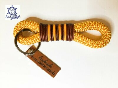 Schöne handgefertigte Handschlaufe für Deine Kamera, der Marke AlsterStruppi aus Tau 10 mm, Länge nach Wunsch, Schlüsselring zur Befestigung an der Kamera, in silber- gold- oder kupferfarben. Der Knoten ist mit Sattlergarn unsichtbar vernäht.